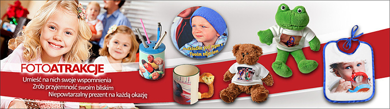 - fotogażety: Twoje zdjęcie na kubku, koszulce, poduszce, puzzlach, podkładce pod mysz, fartuszku kuchennym, podstawce pod kubek, śliniaczku dla dzieci, krawacie, maskotkach, podkładce pod kubek, breloczku, czapeczce, torbie, filiżance, popielniczce, kuli śnieżnej, przyborniku i inne